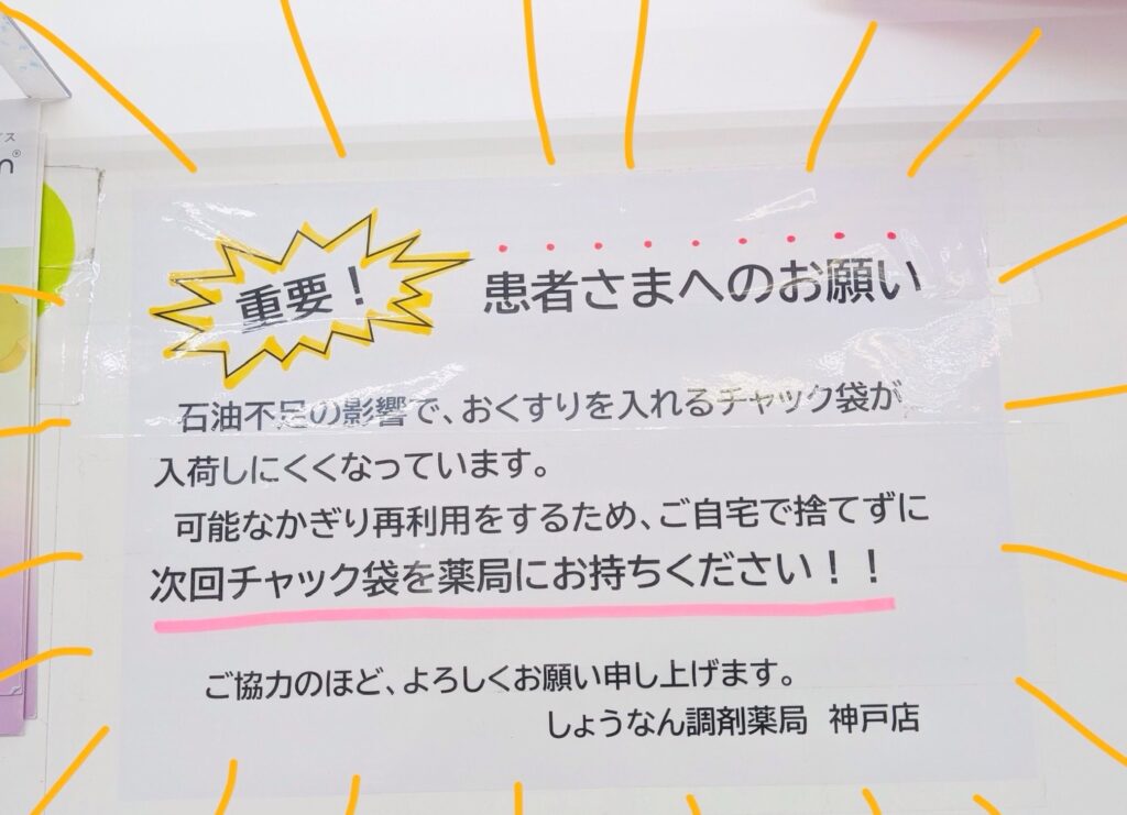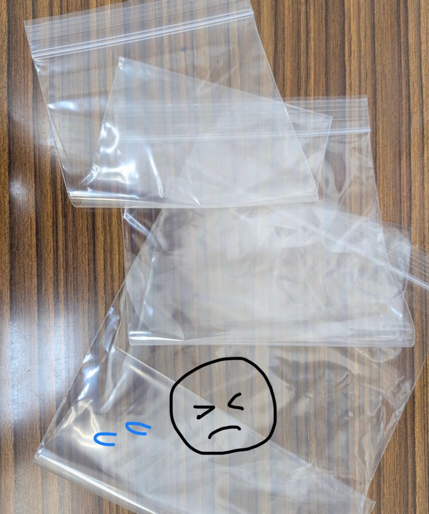 前回(もしくはそれ以前に)お渡ししたチャック袋を